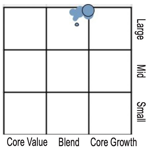 The Morning Star Style Map is the Morningstar Style Box™ with the center 75% of fund holdings plotted as the Morningstar Ownership Zone™. The Morningstar Style Box is designed to review a fund's investment strategy. The Morningstar Ownership Zone provides detail about a portfolio's investment style by showing the range of stock sizes and styles. The Ownership Zone is derived by plotting each stock in the portfolio within the proprietary Morningstar Style Box. Over time, the shape and location of a fund's ownership zone may vary.