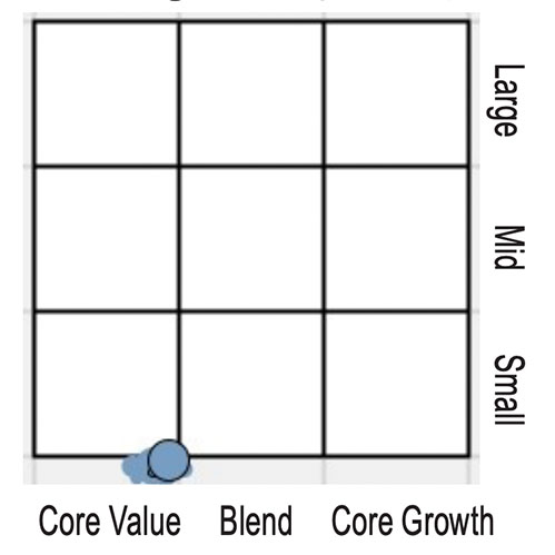 The Morning Star Style Map is the Morningstar Style Box™ with the center 75% of fund holdings plotted as the Morningstar Ownership Zone™. The Morningstar Style Box is designed to review a fund's investment strategy. The Morningstar Ownership Zone provides detail about a portfolio's investment style by showing the range of stock sizes and styles. The Ownership Zone is derived by plotting each stock in the portfolio within the proprietary Morningstar Style Box. Over time, the shape and location of a fund's ownership zone may vary.